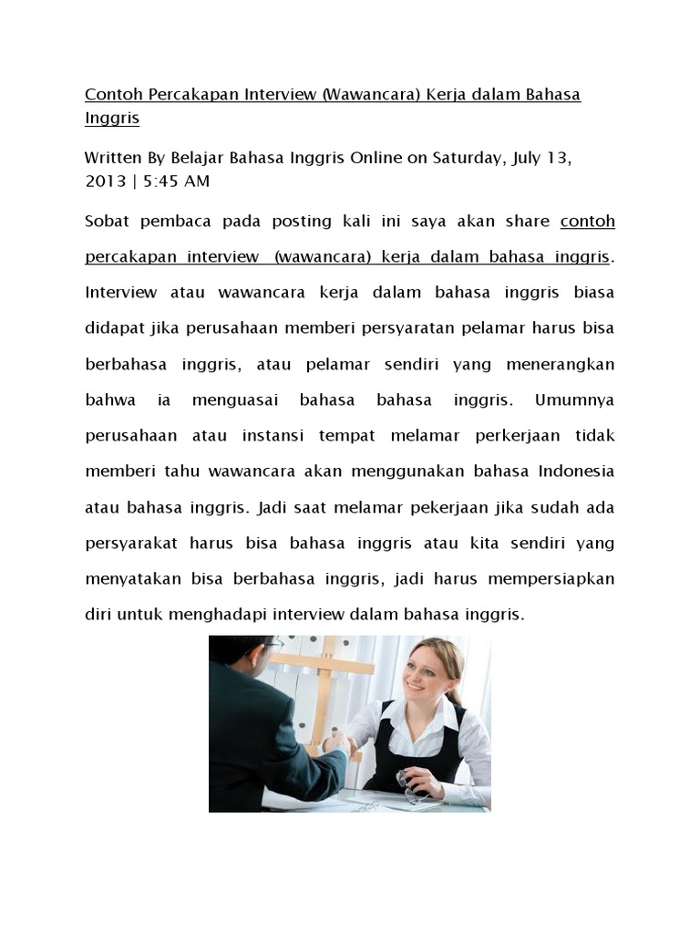 Contoh Interview Kerja Bahasa Inggris Tips Gobel Pdf